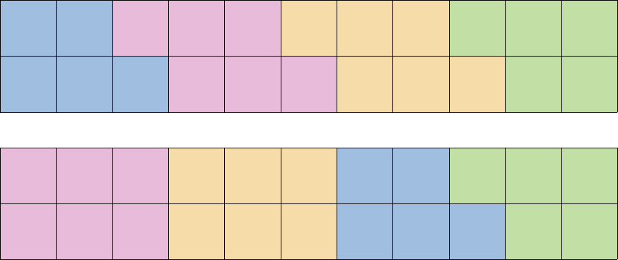 이제 정답이 가질 수 있는 배치를 생각 해 보자, 첫번째로 2×M 모양에서 첫번째 열과 마지막 열은 특수하게 다루어져야 하는데, 그룹의 경계를 생각할 때 가장 왼쪽 혹은 가장 오른쪽 열은 그룹의 경계이지만 충돌이 발생하지는 않는다. 그렇기 때문에, 우리는 이 두 열에 대한 특수한 배치를 증명할 것이다.