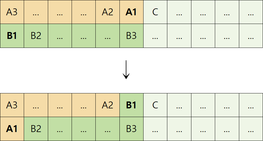 * A1: 발생하는 충돌이 1개 줄었다. (B3, C → B2)