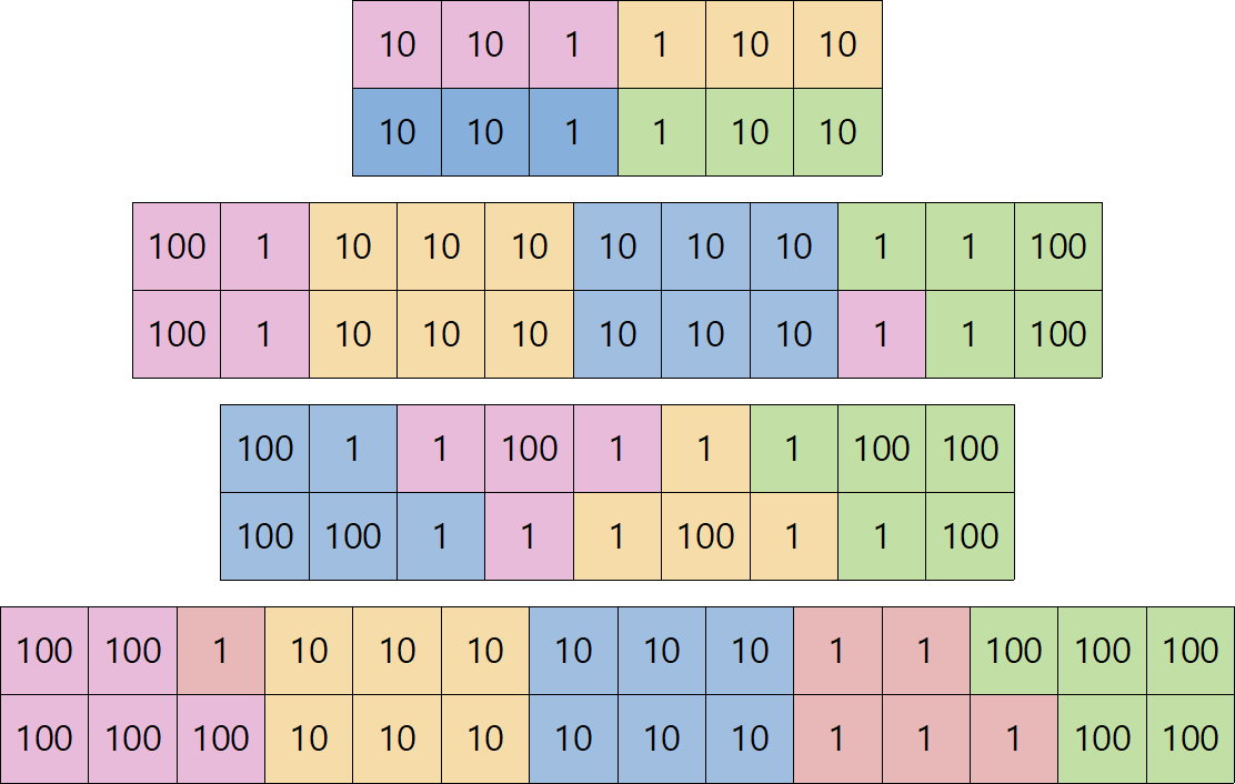 - $D_{i, \ j} =\max(L_{i,\ K_{i, \ j}}, R_{K_{i, \ j} + 1,\ j })$이고 $K_{i, j}$를 기준으로 왼쪽 혹은 오른쪽을 가져갑니다.